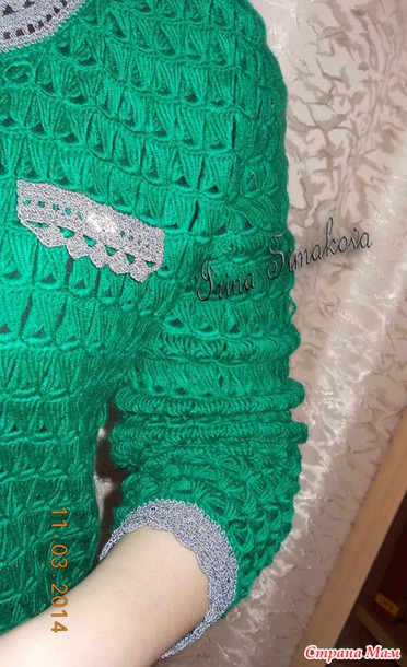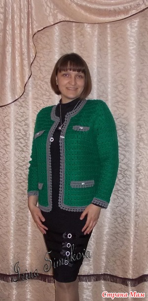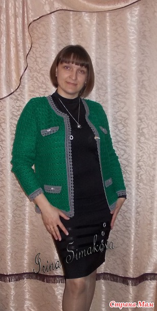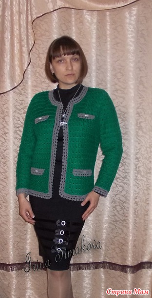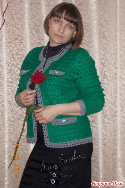 Жакет выполнен в технике брумстик, первый раз пробовала вязать таким способом, думала напортачу, тем более что нужно было подгонять все под мои размеры и рукав втачной.. но ничего, справилась. Вязала сверху вниз, рукава набирала от проймы.