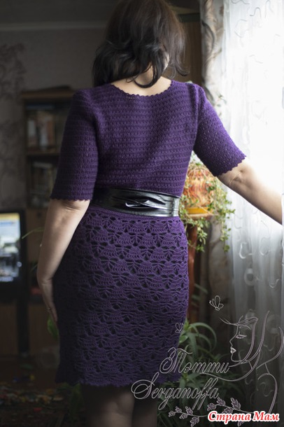Платье связано из пряжи "Кенгуру" Состав: 95% шерсть, 5 % - кенгуру. Вес: 100 г. Длина нити в мотке - 300 м.