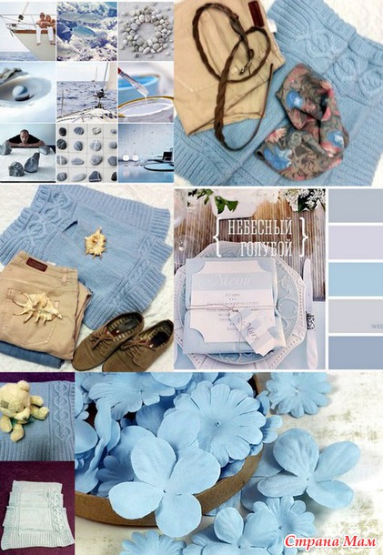 Выбирая различные оттенки голубого и сочетая их даже просто друг с другом, можно получить отличные законченные сочетания.