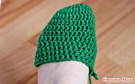 Далее начинайте вывязывать мысок. Для этого в начале каждой спицы провяжите по 2 п. вместе лиц. Повторяйте убавления в каждом 2-м ряду, пока на каждой спице не останется 6 п. Далее выполняйте убавления в каждом ряду, пока не останется всего 8 п. Обрежьте нить, концом нити стяните оставшиеся петли и закрепите. Отпарьте изделие. Свяжите второй носок аналогично.