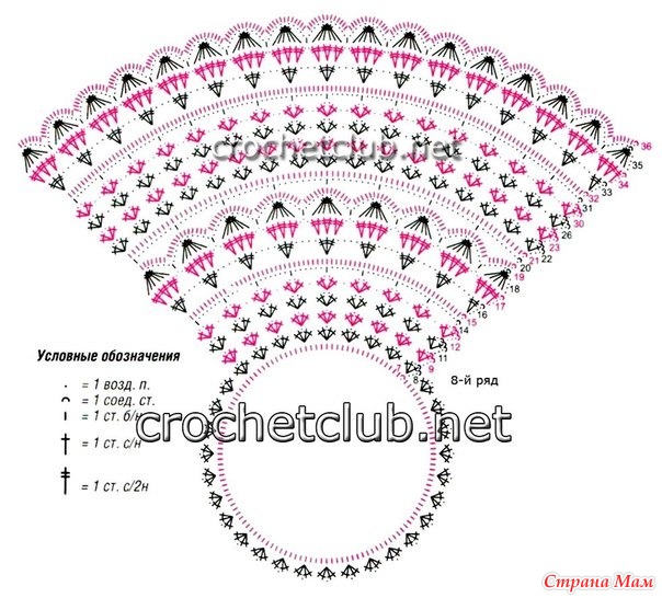 Верхняя часть юбки. Вязала 27 рядов по этой схеме. Затем вязала по схеме нижней части.