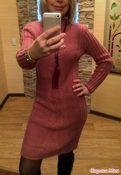 Вязала на заказ платье. Еще летом. И вот наступили морозы. И довольная заказчица прислала мне фото. Платье ей очень нравится, а главное согревает!