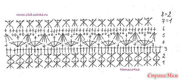 3 ряд вязала за дальние полупетли, в 5 ряду столбики с накидами вязала за д. п/п, а столбик без накида как обычно.