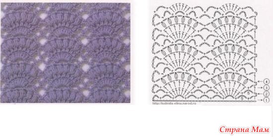 Пряжа Пехорка жемчужная, ушло 4 мотка на 42-44 размер, крючок 2,5. Схема узора: