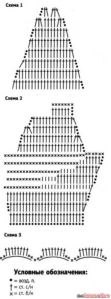 Свяжите кораблик по схеме 2. Выполните тамбурным швом волнистую линию и провяжите на ней кайму по схеме 3.