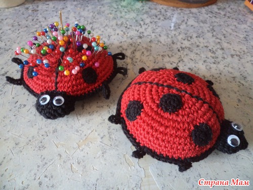 Вам потребуется: нитки для вязания (полушерсть) красного, черного и белого цвета; крючок №1,5; картон; синтепон или вата для набивки. Техника выполнения: вязание крючком столбиками б/н. Брюшко (черная нить): цепочку из 4-х в. п. замкнуть в кольцо с помощью соед. ст. 1 ряд: 8 ст. б/н под петли цепочки. 2 ряд: 16 ст. б/н в столбики нижнего ряда. 3 ряд: 32 ст. б/н. Читать полностью