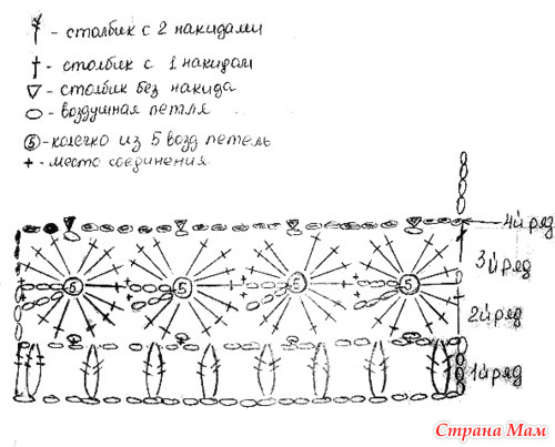 потом, как я поняла - обвязываем снизу (см. нумерацию по низу "кружочков"
