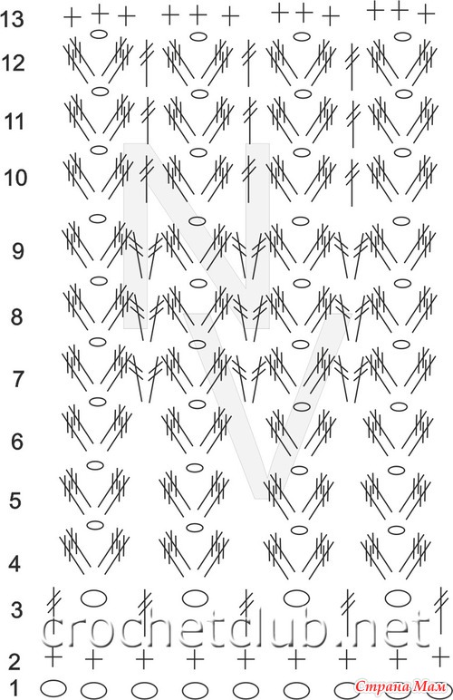 это схема к штанишкам в поясе, только вязала как в 10,11,12 рядах, и не по 2ст с накидом а по 3