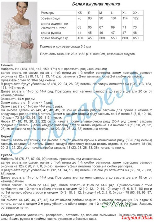 Белая ажурная туника связана спицами №3.5. Пряжа бамбук 400/450/400/450/500/550/600/650 гр. схемы и описание здесь:
