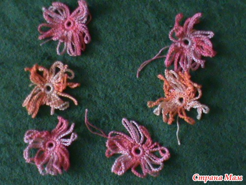 Я буду их обвязывать белым цветом и сразу соединять в одно полотно. И получится "цветы на снегу"