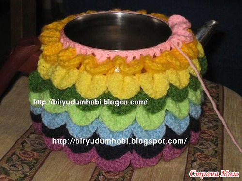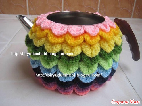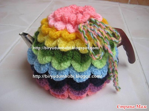Вот такую красивую одежку для чайника я нашла в интернете.. на фото даже есть адрес мастера.., а вот и МК к этому шедевру..