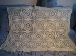 Поэтому я со всей радостью отложила в сторону разные свои рукоделки и начала повязушки детские. Первый заказ был на плед, т. к. связанные недавно зайцы ушли в подарок подруге.