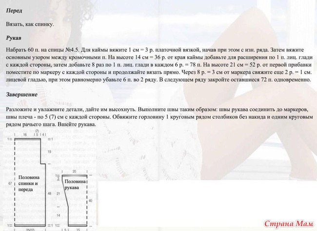 Туника состоит из четырех деталей: переда, спинки, и двух деталей рукавов. Рисунок на всех деталях одинаковый – ажурный.