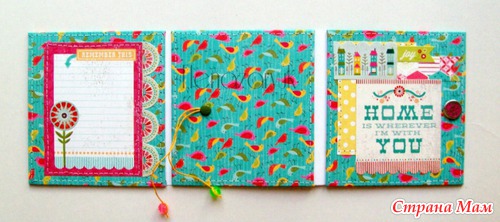На передней обложке я тоже вставила брадс, за его шляпку шнур и крепится (желательно, чтобы брадс был не очень маленьким, иначе шнур будет выпадать). На концы шнура я привязала бусины.