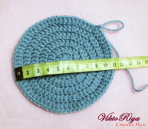 Открою маленький секрет. Для того, чтобы шапочка легла ровненько по головке, я не вяжу одними прибавлнеиями до нужного диаметра. Например нам нужно, чтоб диаметр был 12 см. Значит я после предпоследнего ряда (10 см) провязываю один ряд без прибавлений. Потом последний ряд с прибавлениями и далее вяжу до конца без прибавлений