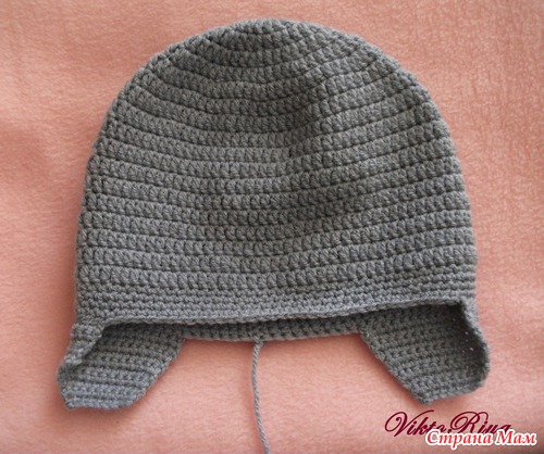 Все, основная часть шапочки готова. Оставляем нить (не обрезаем) для контрольного обвязываения шапочки вместе с пришитыми ушками. Не жалейте, а то потом не хватит)))))