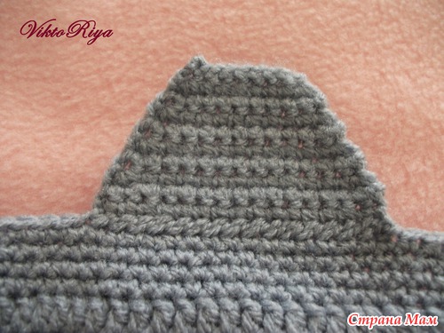 Третий ряд так: первые и последние 12 петел соединительными столбиками, затем 6 столбиками без накида и середину столбиками с накидом