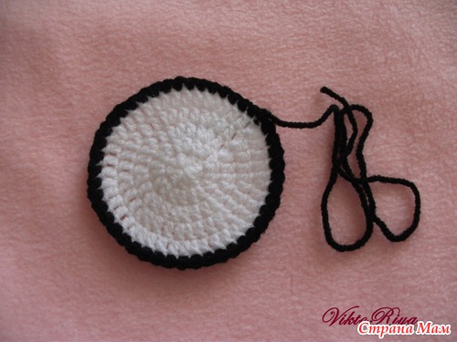 примерно 5 рядов и обвязываем черной нитью. Не забываем ниточку оставить для пришивания