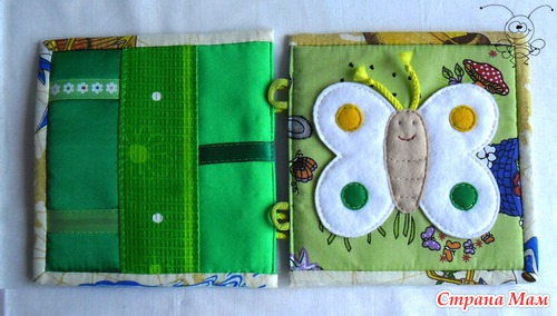 Третий разворот: дергаем бабочку за усики, считаем пятнышки. Крылышки отгибаются и шуршат.