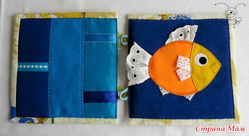 Четвертый разворот: рыбка - плавнички сделаны из двух разных кружев: х/б и синтетика - отгибать и дергать