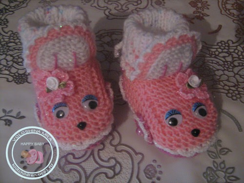 Если хотите сделать более тёплый вариант, сделайте имитацию носочков, связанный резинкой 1*1 отворотик. Для этого, до сшивания пинеток, по изнаночной стороне пинетки набрать чуть ниже края, по перемычкам петелек 33 петли и вязать резинкой 1*1, 12-15 см. А затем уже сшить пинетки. Удачи!!!