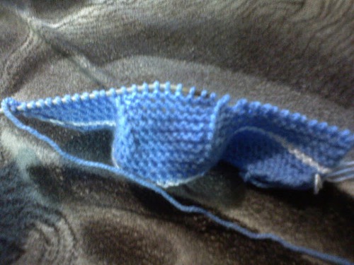 1. Набираем 35 петель и вяжем платочной вязкой, прибавляя по краям и по обе стороны от центральной петли( по одной петле, через ряд - 3 раза). Должно получиться 47 петель: