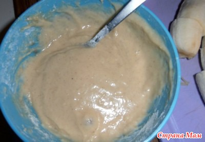 . Тесто выходит как густая сметана. Бананы режем окунаем в кляр и обжариваем в разогретом масле.