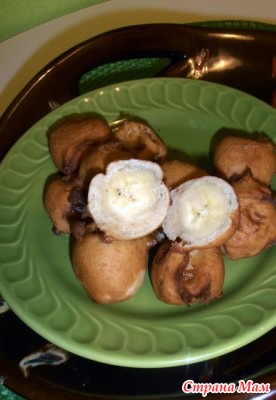 некоторые шарики получились как с кремом внутри.. т. к банан растаял.. а некоторые получились наполовину целенькие.. чтобы бананы растаяли необходимо дольше жарить бананы.