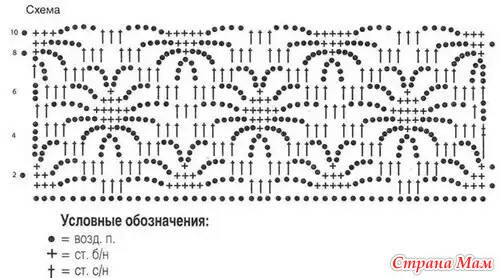 Вот мое начало. Пояс вязала до нужной ширины столбиками с накидом за заднюю полупетлю, затем обвязала столбиками без накида и далее по схеме: