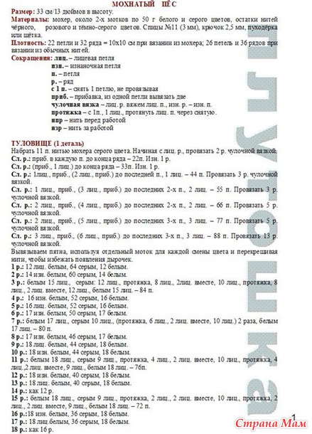Нам потребуется пряжа бежевого цвета, пряжа черного цвета, мулине светло-бежевое, серое и коричнево-рыжее, крючок номер 1,5. Вяжем столбиками без накида-(ст.)