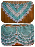 Комплект связан из нити Garden 10 100%мерсеризированный хлопок, пр-ва Турция, крючок 1.5. Нити ушло 100грамм бирюзовых и 50грамм белых