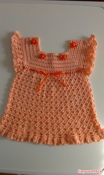 Связалось у меня еще одно платьице в подарок для малышки, которая родилась раньше положенного срока. Наша малышка еще и не думает рождаться, а маленькая Софья приходит в себя после двусторонней пневмонии. Дай ей Бог здоровья и скорейшего выздоровления.