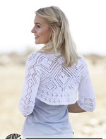 Вязание болеро начинается с детали спинки, которая вяжется из центра по кругу. В итоге получится квадрат, по двум сторонам которого выполнены рукава. Болеро вяжется фантазийным ажурным узором из ромбов и лицевой гладью, все схемы узоров даны в описании. Сама же инструкция рассчитана для нескольких размеров.