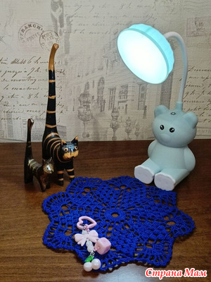 Отчёт. Салфетка выполнена из пряжи Ирис. Материалы: пряжа Ирис синего цвета, крючок № 1,5 Выбрала салфетку из интернета (открытые источники: https://avatars.mds.yandex.net/ нашла схему и начала вязать: Фото в процессе вязания: И вот такая салфетка получилась: Спасибо за просмотр!