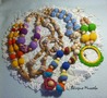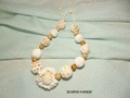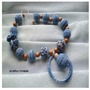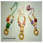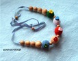 слингобусы выполненные мною из обвязанных хлопковой пряжей можжевеловых бусин, одеты на атласную ленту или вощеный шнур