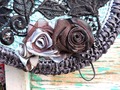 Сумочка из атласных лент. Обвязка лентами цвета антрацита. Декор - японское кружево, пайетки пр-ва Франция, бусины чешское стекло.