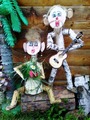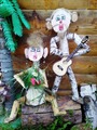 ручным лобзиком выпилила 2 части для гитары,,Высота гитары из пенопласта .Струны из тонкой проволоки .Покрыто акриловыми красками, прозрачным акриловым лаком и сверху яхтный лак+ алмазики