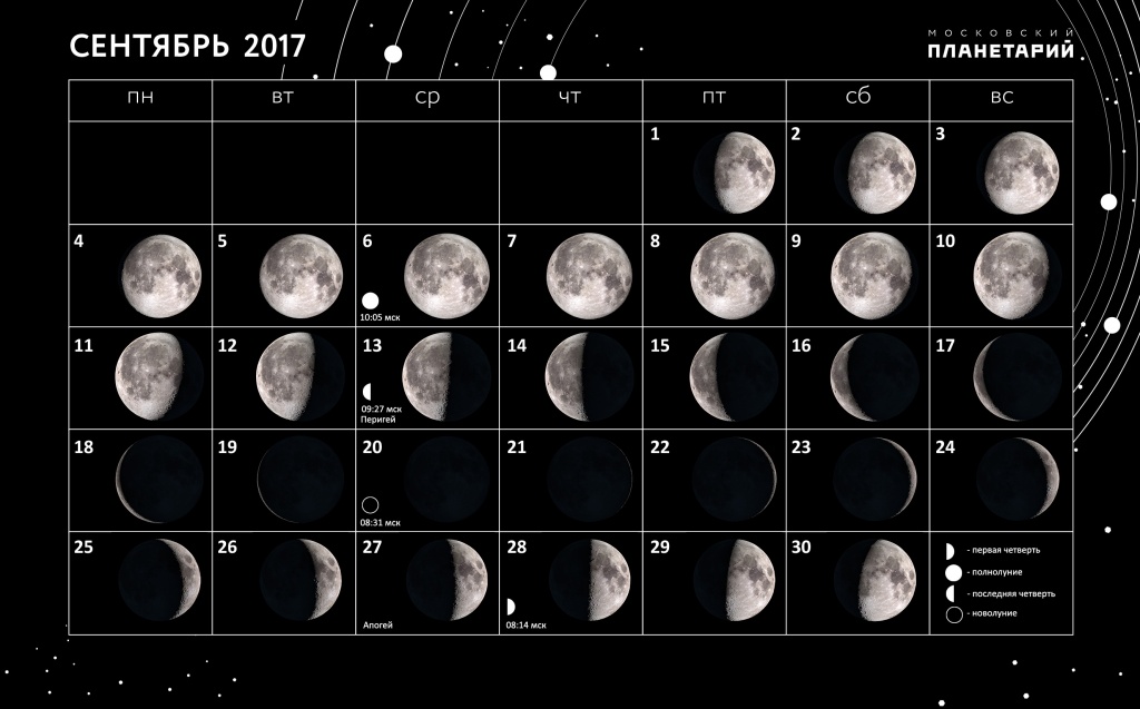 13 сентября –Луна в перигее, расстояние от Земли 369855 км (19:05)