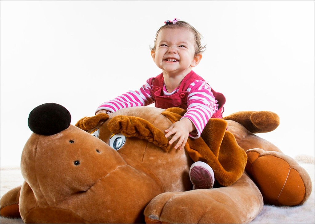 Лучший способ добиться естественного поведения и снять напряжение — дать ребенку поиграть. Используйте реквизит — мягкие игрушки, кубики, пазлы. Если снимаете группу детей, предложите им разыграть сценку. С малышами придумайте сценарий. Например, на счет «три» подпрыгнуть, выглянуть из-за стула, подбежать к вам, поднять мячик или куклу.