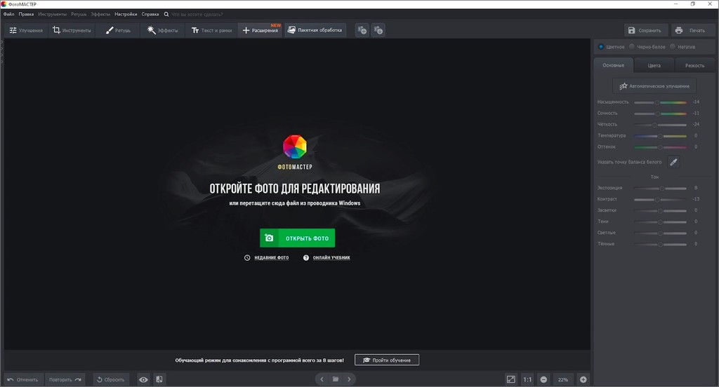 1. Скачайте софт и установите на ПК. Запустите программу. Кликните на «Открыть фото» или перетащите файл курсором мыши из окна проводника.