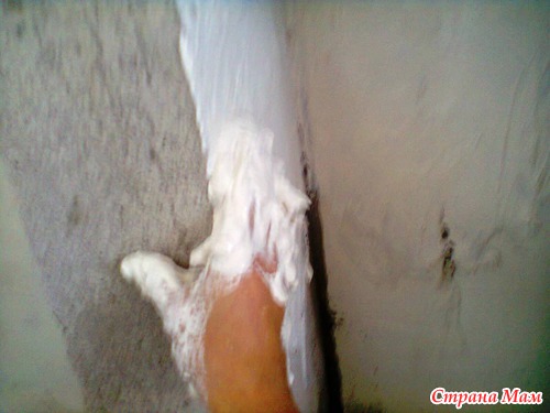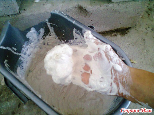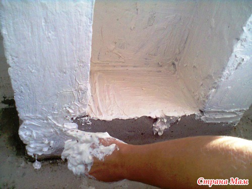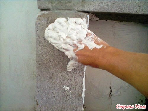 Я развела шпатлевку до состояния очень густой сметаны. Потом, просто набирая ее в ладонь - начала намазывать на камень.