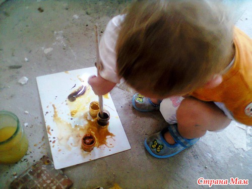 Работа кипела, и тут, на самом интересном месте, проснулся "прораб" - пришел показывать, как правильно красить.