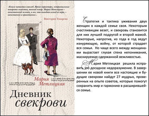Победители данного конкурса получат в подарок наборы замечательных книг: Мария Метлицкая «Дневник свекрови», Татьяна Булатова «Мама мыла раму», Инна Бачинская «Свой ключ от чужой двери».