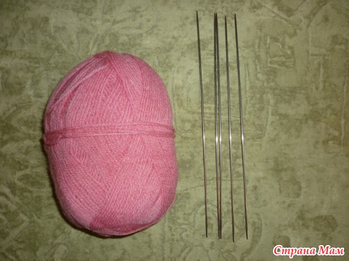 Необходимы пряжа и 5 спиц (у меня семеновская пряжа Ольга 100гр/392м, спицы №2)