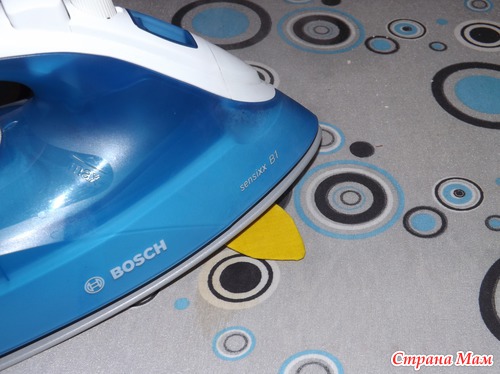 Хорошо проутюживаем деталь (с картоном внутри), чтобы ткань приняла форму заготовки (припуски заутюживаются вовнутрь). Аккуратно, не обожгитесь паром!