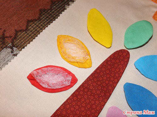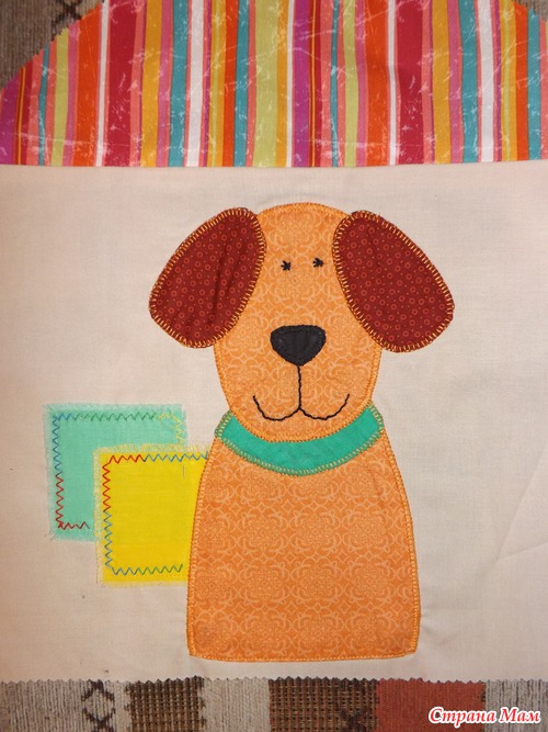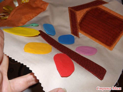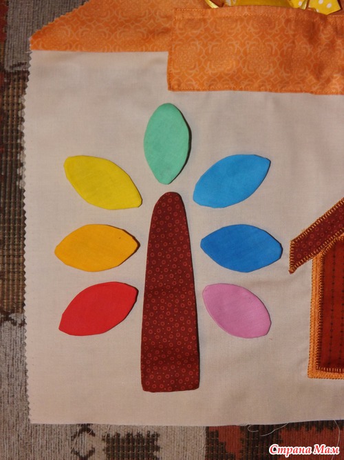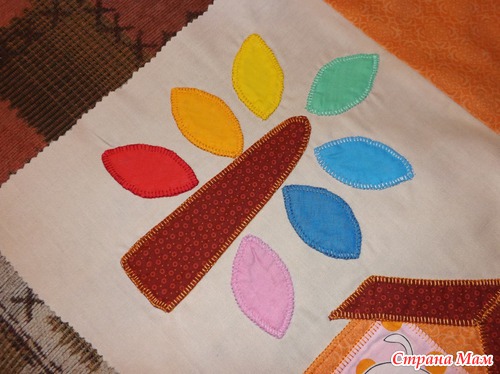 Небольшой совет: если аппликация многослойная, то сначала пришивайте верхние слои к нижним, а потом уже всю аппликацию на основную ткань, чтобы с изнанки не было большого количества швов и всё было аккуратненько.