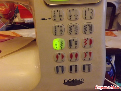 Начинаем пристрачивать. У меня на машинке есть специальная строчка (и лапка) для аппликации, видите?