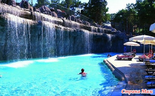 И бассейн с искусственным водопадом, очень красивый: