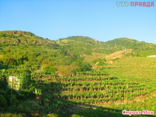 И вот Вы практически добрались до места Х, медленно, но верно автобус взбирается в гору, вокруг банановые плантации и конечно же прекрасные виды зелени, моря и собственного аквапарка отеля. Первый шаг из трансфера около главного входа в основное здание.