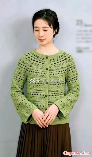 | Ажурный кардиган с круглой кокеткой. Крючок. | |